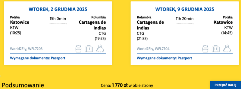 Okazyjna cena lotów czarterowych do Kolumbii za 1770 zł!