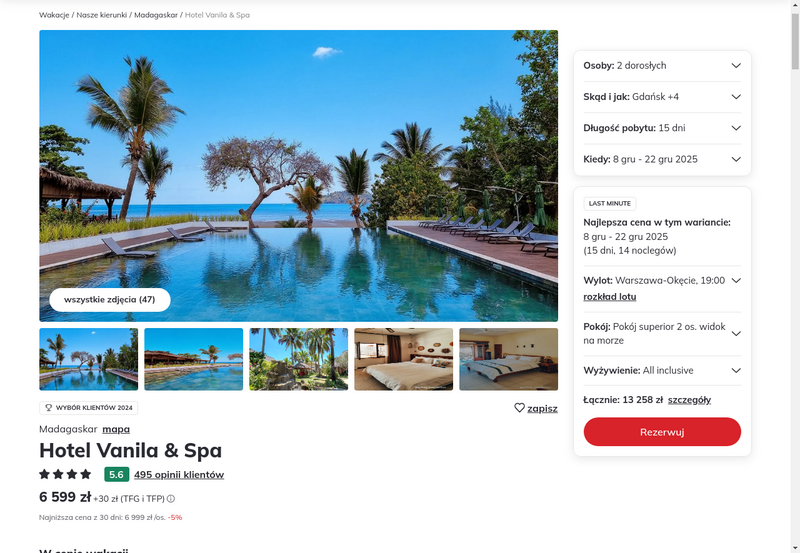 Aktualizacja: Długi wypoczynek na Madagaskarze: 14 dni w 4* hotelu z all inclusive przy plaży za 5999 zł