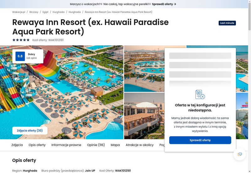 Niedostępność oferty została udokumentowana zrzutem ekranu.