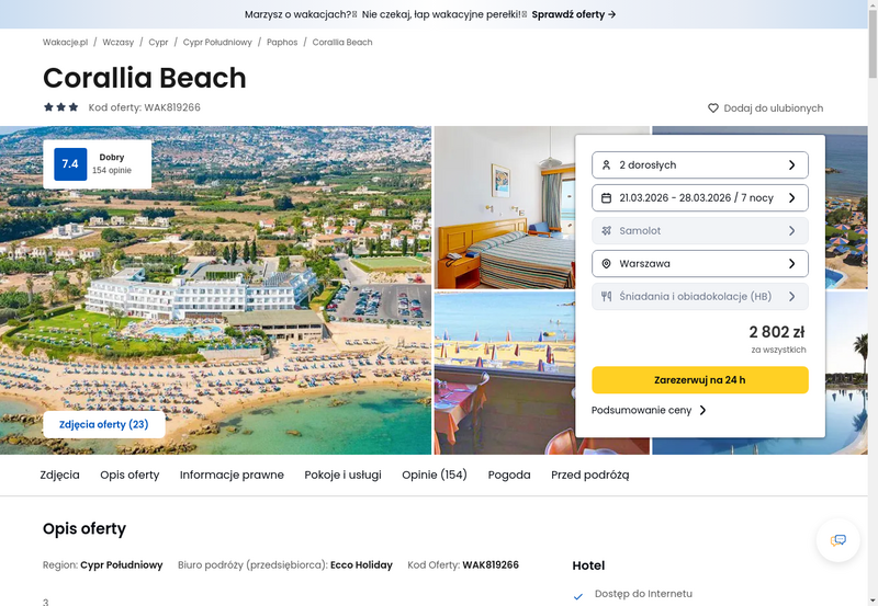 Aktualizacja: Przywitaj wiosnę na Cyprze: 3* hotel z wyżywieniem od 1451 zł