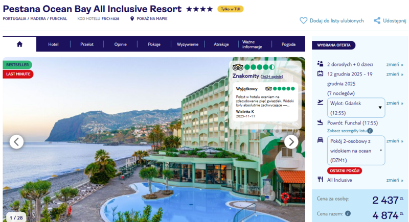 Wyloty z Gdańska, Katowic i Warszawy do Portugalii to początek przygody, która prowadzi na Maderę – malowniczą wyspę, gdzie czeka Pestana Ocean Bay all inclusive Resort. To świetna propozycja dla osób szukających wygodnego wypoczynku, z dostępem do wielu udogodnień, które uprzyjemnią każdy dzień urlopu.