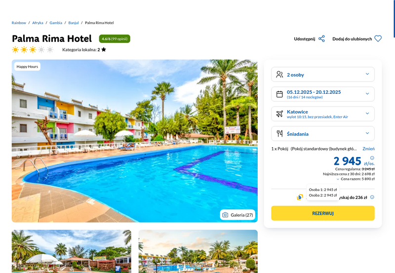 Aktualizacja: Długi wypoczynek w Gambii: 14 dni w hotelu ze śniadaniami od 2745 zł