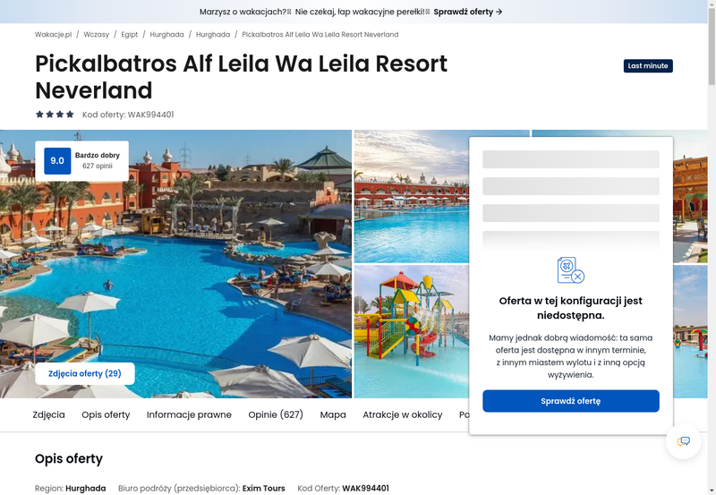 Niedostępność oferty została udokumentowana zrzutem ekranu.