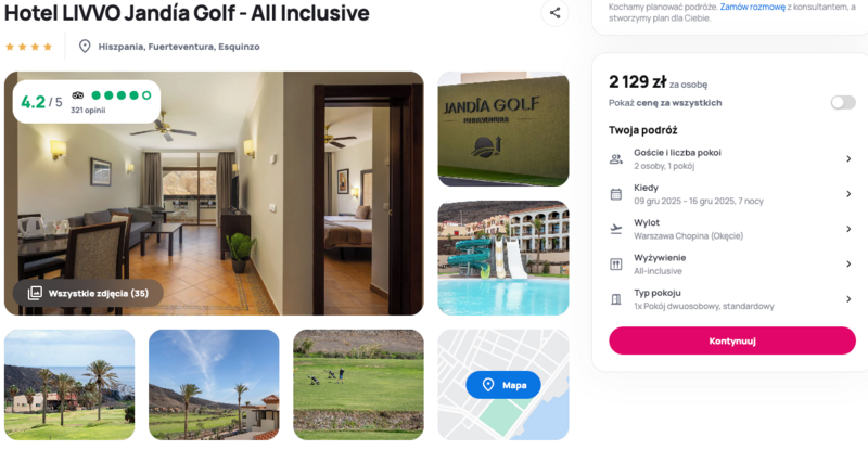 Wyloty z Warszawy, Berlina, Gdańska, Katowic i Krakowa prowadzą prosto na słoneczną Fuerteventurę, jedną z urokliwych hiszpańskich wysp. To tutaj znajduje się hotel LIVVO Jandía Golf, który oferuje pobyt w formule all inclusive – czyli wszystko, co potrzebne do udanego wypoczynku, już w cenie.