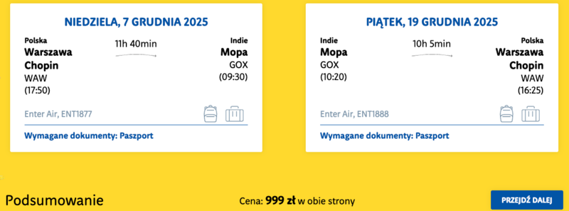 HIT: Tanie loty czarterowe z dużym bagażem do Indii (Goa) za 999 zł!