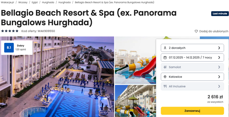 Propozycja pobytu w Bellagio Beach Resort & Spa, to ciekawa opcja dla osób szukających słońca, morza i wygodnego wypoczynku. Ten pięciogwiazdkowy obiekt położony jest w spokojnej części Hurghady i może pochwalić się prywatną, piaszczystą plażą, a także aquaparkiem, który szczególnie przypadł do gustu rodzinom z dziećmi. Wśród dostępnych atrakcji goście często chwalą baseny, zjeżdżalnie wodne i różnego rodzaju animacje.