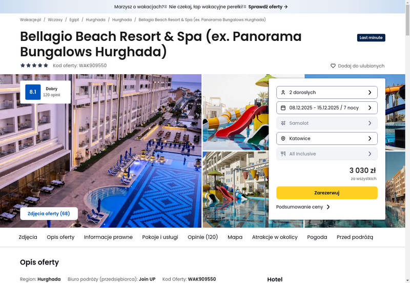 Misją Lastminuter.pl jest przedstawienie Ci najlepszych zdaniem naszej redakcji okazji na podróże. Opisujemy oferty znalezione przez nas w internecie i wskazujemy adresy internetowe, pod którymi samodzielnie możesz wykupić podróż lub elementy podróży. Ceny w artykułach są aktualne w chwili publikacji. Możemy otrzymywać wynagrodzenie od partnerów handlowych, do których Cię przekierowujemy. Nie ma to wpływu na cenę Twojej wycieczki. Powielanie publikacji zabronione.