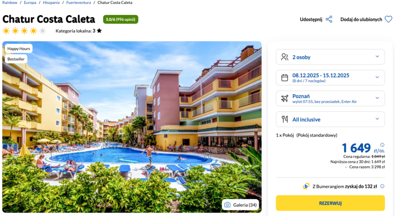 Wyloty z Poznania i Warszawy do Hiszpanii to świetna okazja, by oderwać się od codzienności i zanurzyć w beztroskim klimacie Wysp Kanaryjskich. Na miejscu czeka hotel Chatur Costa Caleta, który oferuje wygodne zakwaterowanie w formule all inclusive – idealne rozwiązanie, jeśli chcemy naprawdę odpocząć i nie martwić się o codzienne sprawy.