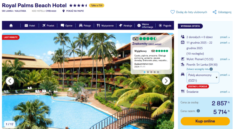 Wylot do Kolombo z Poznania. Celem podróży jest Royal Palms Beach Hotel – elegancki ośrodek położony w malowniczym nadmorskim miasteczku Kalutara.
