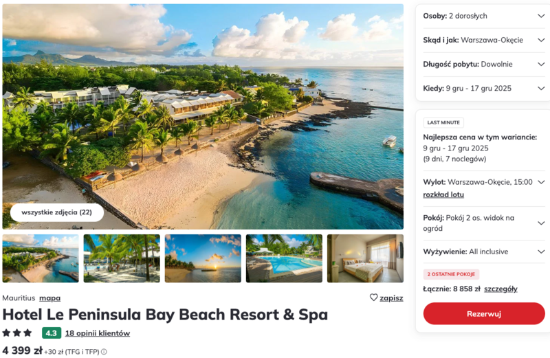Wylot z warszawskiego Okęcia na Mauritius to świetna propozycja dla tych, którzy marzą o ucieczce do miejsca, gdzie słońce świeci niemal codziennie, a błękit oceanu łączy się z miękkim, jasnym piaskiem. Hotel Le Peninsula Bay Beach Resort & Spa, położony w spokojnej, malowniczej zatoczce, zaprasza zarówno pary szukające chwili tylko dla siebie, jak i rodziny z dziećmi, które chcą spędzić wspólny czas w radosnej atmosferze.
