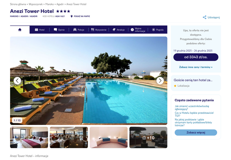 Niedostępność oferty została udokumentowana zrzutem ekranu.