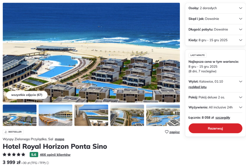Wyloty z Katowic i Warszawy na jedną z najbardziej urokliwych wysp, Sal, to świetny sposób na oderwanie się od codzienności i zanurzenie w klimacie tropików. Czeka tam na Ciebie Hotel Royal Horizon Ponta Sino – pięciogwiazdkowy obiekt, który gwarantuje komfortowy wypoczynek i pełen relaks.