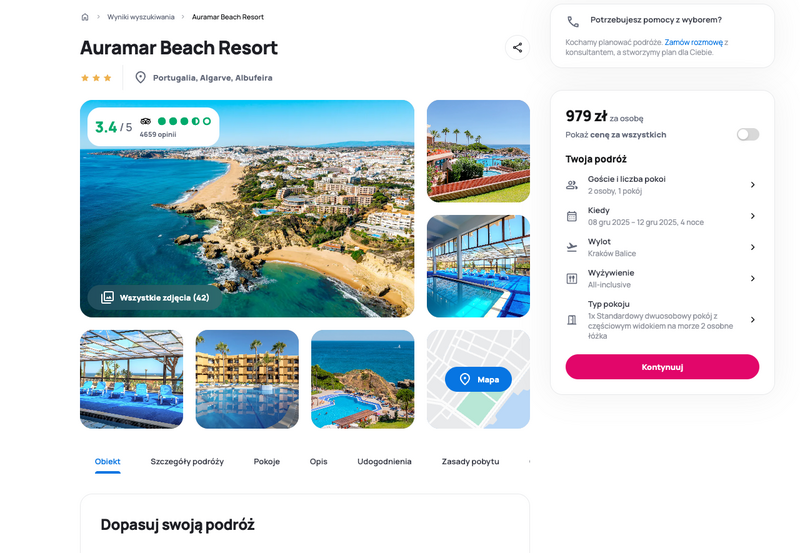 Aktualizacja: Kilkudniowy urlop na południu Portugalii: Malowniczo położony 3* hotel z all inclusive od 909 zł