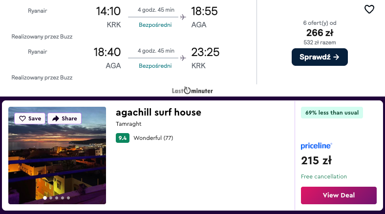 Misją Lastminuter.pl jest przedstawienie Ci najlepszych zdaniem naszej redakcji okazji na podróże. Opisujemy oferty znalezione przez nas w internecie i wskazujemy adresy internetowe, pod którymi samodzielnie możesz wykupić podróż lub elementy podróży. Ceny w artykułach są aktualne w chwili publikacji. Możemy otrzymywać wynagrodzenie od partnerów handlowych, do których Cię przekierowujemy. Nie ma to wpływu na cenę Twojej wycieczki. Powielanie publikacji zabronione.