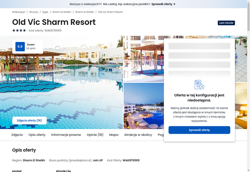 Niedostępność oferty została udokumentowana zrzutem ekranu.