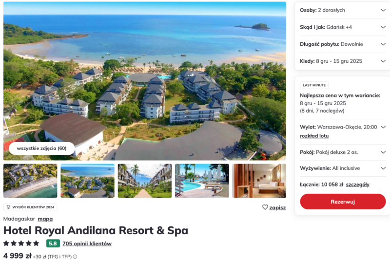 Wylot z warszawskiego Okęcia przenosi nas prosto do tropikalnego raju – Madagaskaru, a konkretnie do pięknie położonego Hotelu Royal Andilana Resort & Spa na wyspie Nosy Be.
