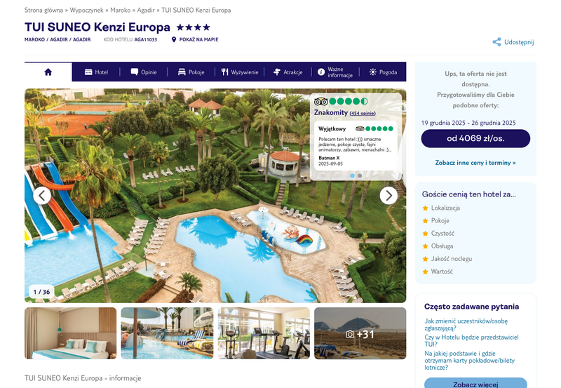 Niedostępność oferty została udokumentowana zrzutem ekranu.