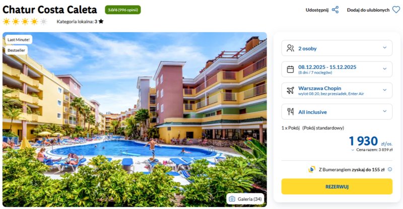 Na miejscu czeka hotel Chatur Costa Caleta, który znajduje się w przyjemnej miejscowości Caleta de Fuste. To dobre miejsce dla osób, które szukają wygody i chcą odpocząć bez większego planowania. Hotel ma bardzo dobre opinie – goście chwalą nie tylko czystość i przyjazną obsługę, ale też naprawdę smaczne jedzenie, serwowane w formule all inclusive. A to oznacza, że przez cały dzień można korzystać z posiłków, a także napić się czegoś dobrego – bezalkoholowego lub z procentami.