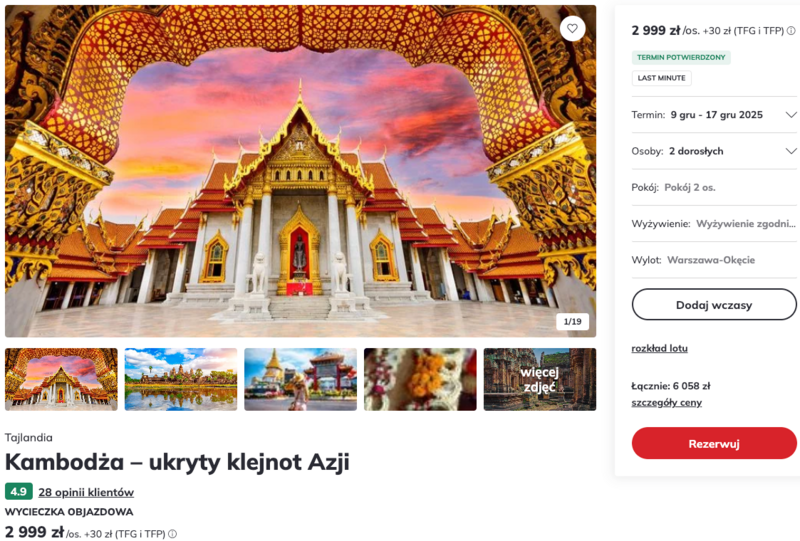 Ukryty klejnot Azji: Odkryj tajemnice Tajlandii i Kambodży za 2999 zł