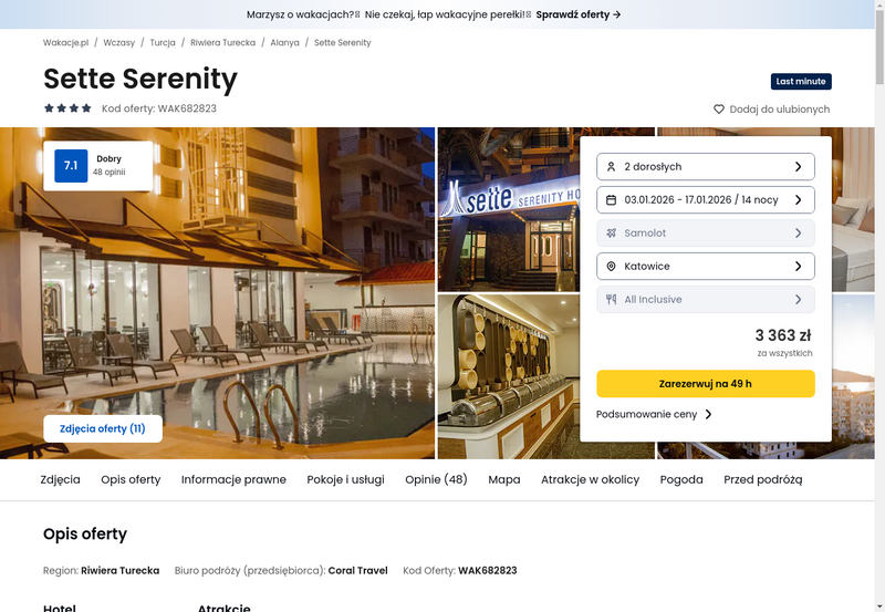 Misją Lastminuter.pl jest przedstawienie Ci najlepszych zdaniem naszej redakcji okazji na podróże. Opisujemy oferty znalezione przez nas w internecie i wskazujemy adresy internetowe, pod którymi samodzielnie możesz wykupić podróż lub elementy podróży. Ceny w artykułach są aktualne w chwili publikacji. Możemy otrzymywać wynagrodzenie od partnerów handlowych, do których Cię przekierowujemy. Nie ma to wpływu na cenę Twojej wycieczki. Powielanie publikacji zabronione.