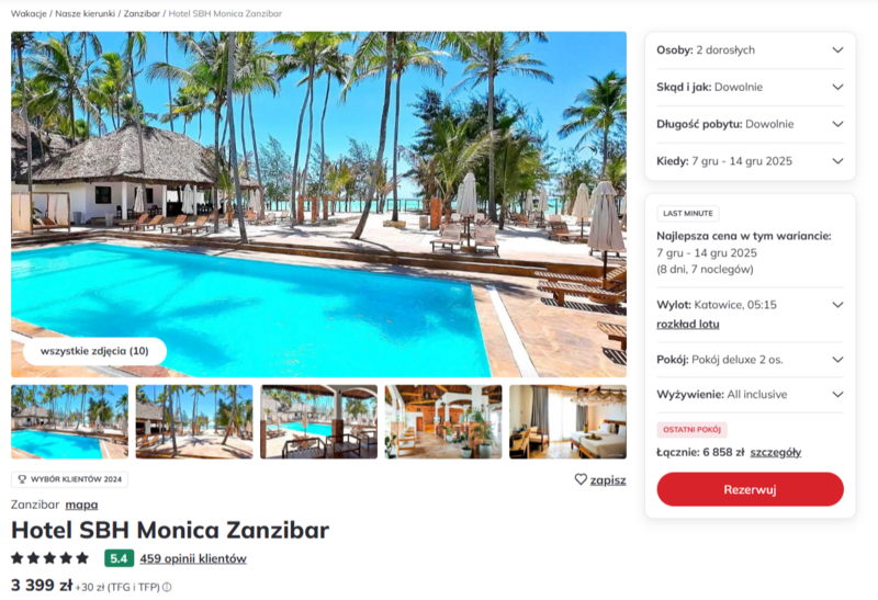 Last minute: Zanzibar, 5* hotel z all inclusive za 3399 zł