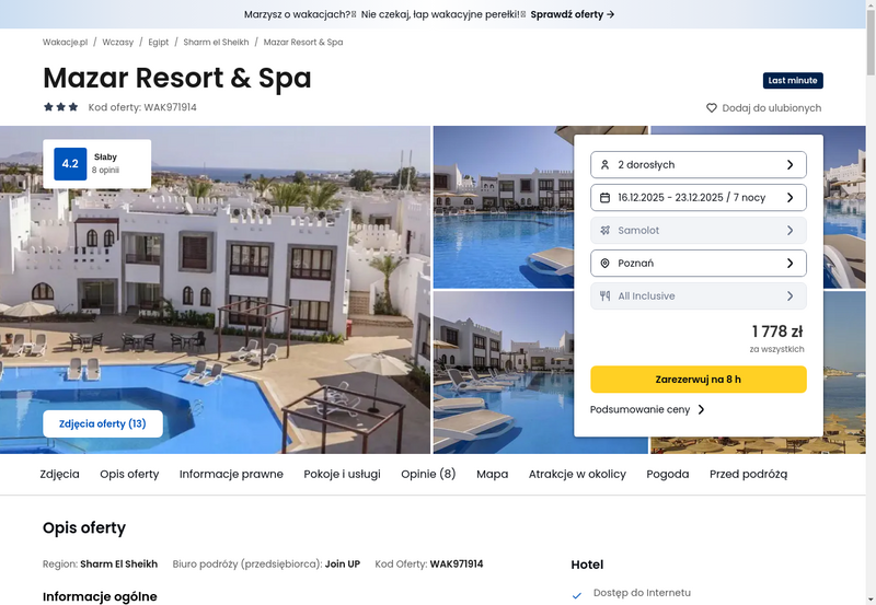 Wyjazd do Mazar Resort & Spa może okazać się świetnym wyborem dla tych, którzy marzą o zimowej przerwie w nieco cieplejszym klimacie. Komfortowa oferta, dobre opinie i przyjemna pogoda to połączenie, które trudno przegapić.