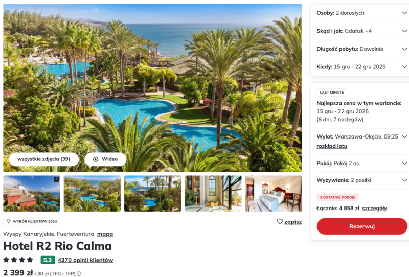 Jesienią i zimą ta wyspa to prawdziwa oaza ciepła. Temperatura potrafi sięgnąć 24°C w ciągu dnia, a słońce przyjemnie dogrzewa przez większość dnia. To świetna alternatywa dla chłodów w Polsce. Połączenie przystępnych cen, komfortowego hotelu i zachęcającej pogody sprawia, że Fuerteventura może być idealnym pomysłem na reset.