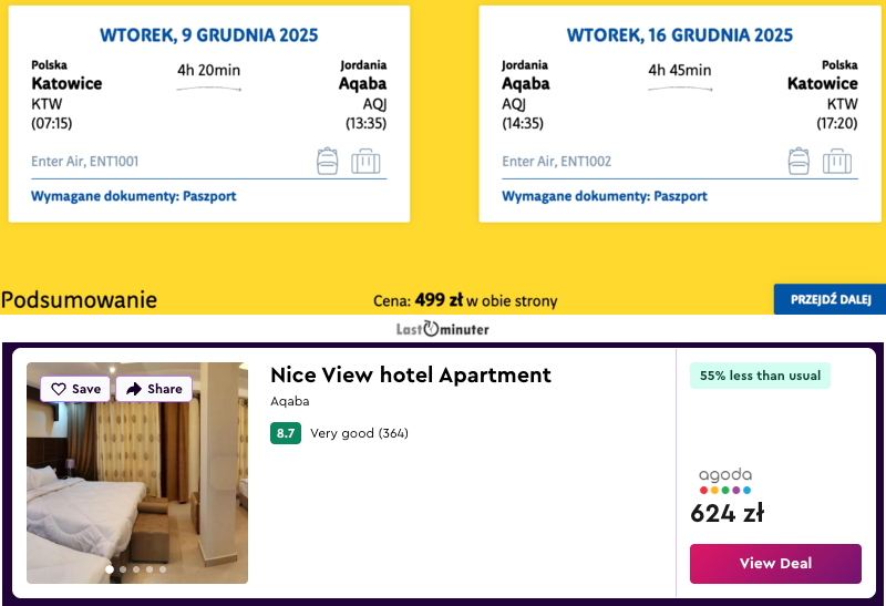 Misją Lastminuter.pl jest przedstawienie Ci najlepszych zdaniem naszej redakcji okazji na podróże. Opisujemy oferty znalezione przez nas w internecie i wskazujemy adresy internetowe, pod którymi samodzielnie możesz wykupić podróż lub elementy podróży. Ceny w artykułach są aktualne w chwili publikacji. Możemy otrzymywać wynagrodzenie od partnerów handlowych, do których Cię przekierowujemy. Nie ma to wpływu na cenę Twojej wycieczki. Powielanie publikacji zabronione.