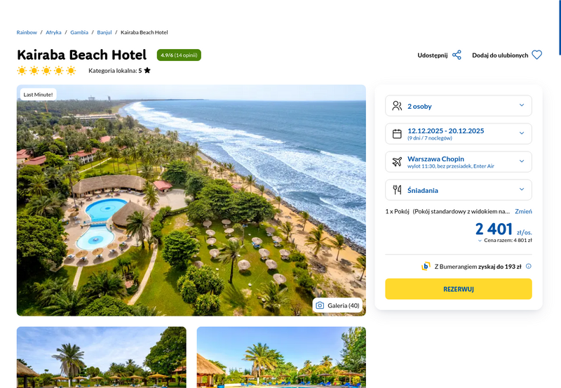 Aktualizacja: Wypoczynek kilka kroków od plaży: Gambia, 5* hotel ze śniadaniami od 1601 zł!