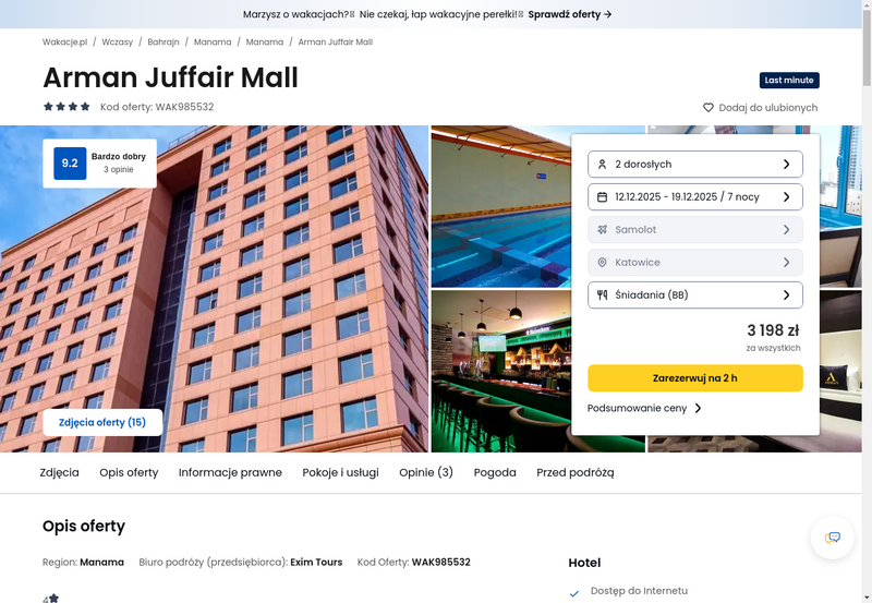 Misją Lastminuter.pl jest przedstawienie Ci najlepszych zdaniem naszej redakcji okazji na podróże. Opisujemy oferty znalezione przez nas w internecie i wskazujemy adresy internetowe, pod którymi samodzielnie możesz wykupić podróż lub elementy podróży. Ceny w artykułach są aktualne w chwili publikacji. Możemy otrzymywać wynagrodzenie od partnerów handlowych, do których Cię przekierowujemy. Nie ma to wpływu na cenę Twojej wycieczki. Powielanie publikacji zabronione.