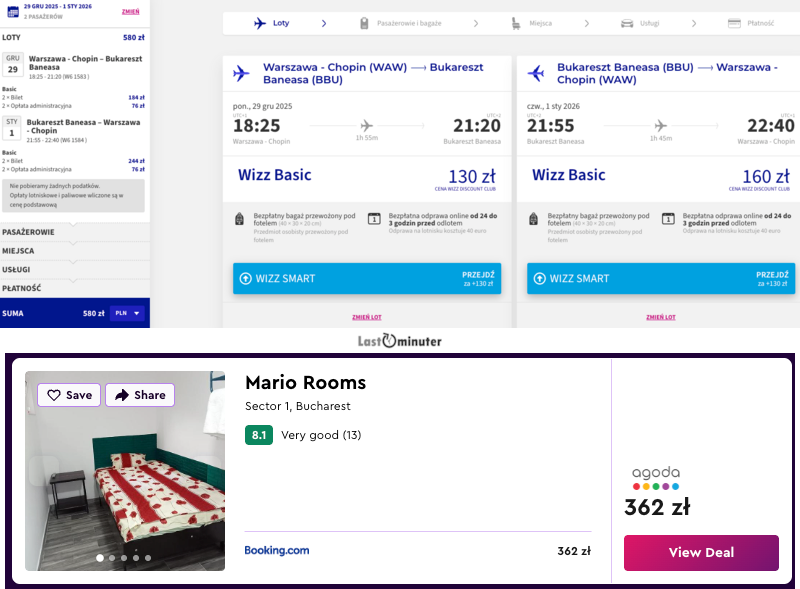 Do Bukaresztu możesz przylecieć później, za bilety lotnicze zapłacisz podobną cenę.