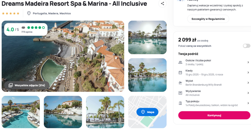 Opinie o Dreams Madeira Resort Spa & Marina są bardzo pozytywne – goście szczególnie doceniają czystość, komfort oraz zróżnicowane posiłki w ramach all inclusive, które potrafią zaskoczyć smakiem. Przy tak szerokiej ofercie atrakcji i tak przyjemnym otoczeniu, trudno się dziwić, że to miejsce cieszy się dużym zainteresowaniem.