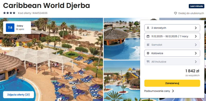Wyloty z Katowic i Warszawy na pełną słońca Djerbę to świetna okazja, by na chwilę zapomnieć o kaprysach zimowej pogody i przenieść się w miejsce, gdzie plaże kuszą złotym piaskiem, a klimat sprzyja wypoczynkowi niezależnie od pory roku. Jednym z ciekawszych wyborów na pobyt jest Caribbean World Djerba – hotel, który łączy wygodę z luzem.