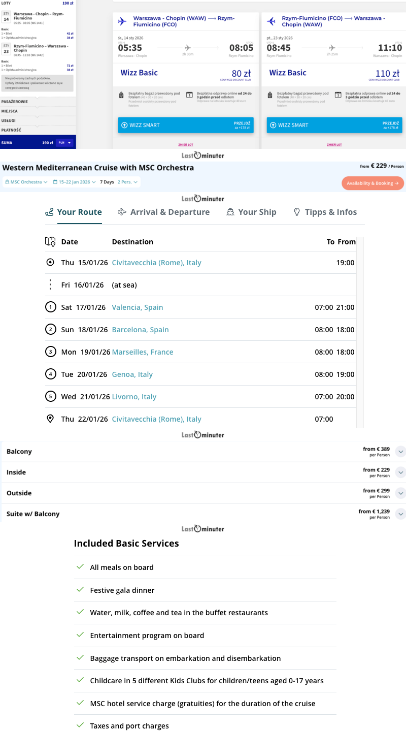 Misją Lastminuter.pl jest przedstawienie Ci najlepszych zdaniem naszej redakcji okazji na podróże. Opisujemy oferty znalezione przez nas w internecie i wskazujemy adresy internetowe, pod którymi samodzielnie możesz wykupić podróż lub elementy podróży. Ceny w artykułach są aktualne w chwili publikacji. Możemy otrzymywać wynagrodzenie od partnerów handlowych, do których Cię przekierowujemy. Nie ma to wpływu na cenę Twojej wycieczki. Powielanie publikacji zabronione.