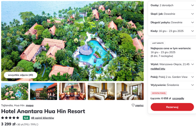 Oferta łącząca lot i pobyt w luksusowym hotelu może być szczególnie atrakcyjna, jeśli weźmiemy pod uwagę zarówno poziom usług, jak i położenie. To propozycja dla tych, którzy chcą przeżyć święta w nieco innym stylu – spokojniej, cieplej i w otoczeniu egzotycznych krajobrazów. Jeśli szukasz odmiany i marzy ci się zimowa ucieczka w stronę słońca, Hua Hin może być dokładnie tym, czego potrzebujesz.