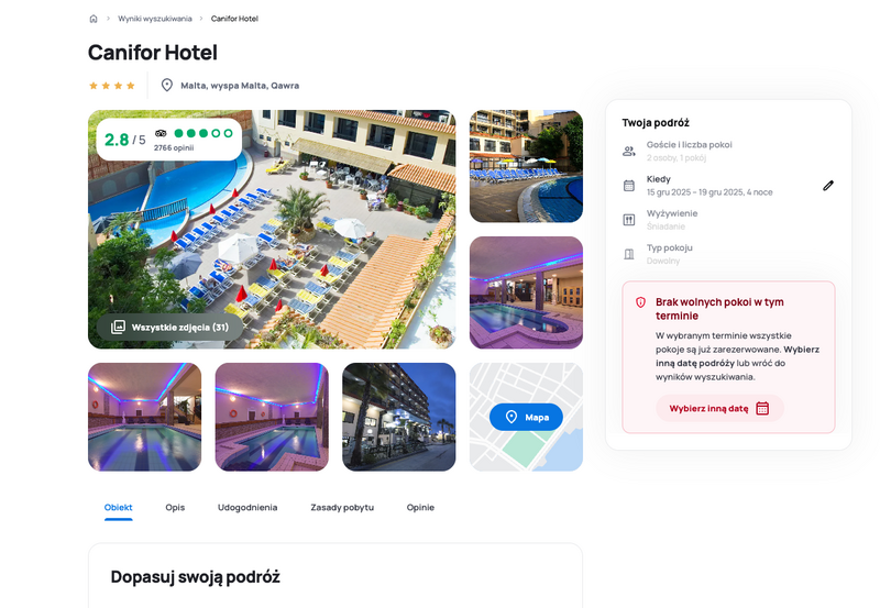 Niedostępność oferty została udokumentowana zrzutem ekranu.