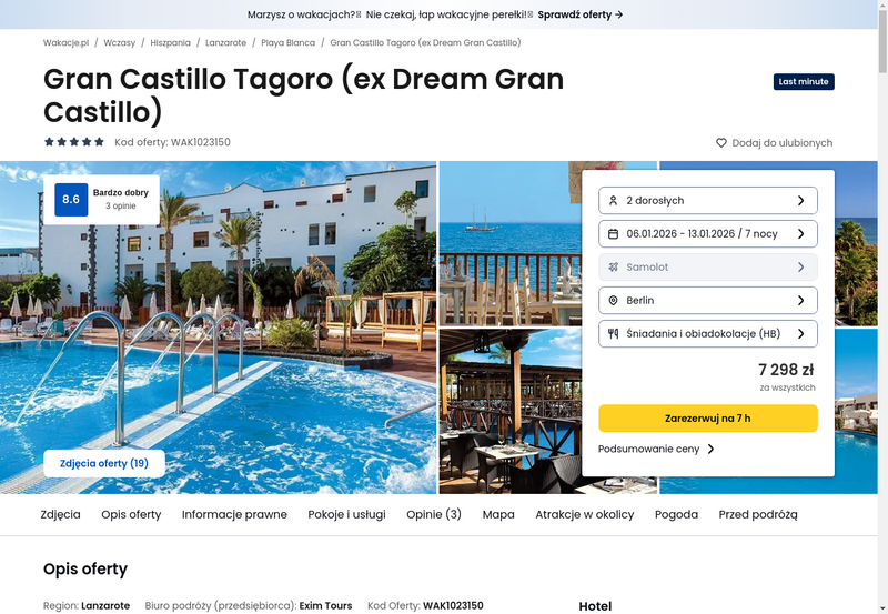 Aktualizacja: Lanzarote w wersji lux: 5* hotel z wyżywieniem od 2779 zł