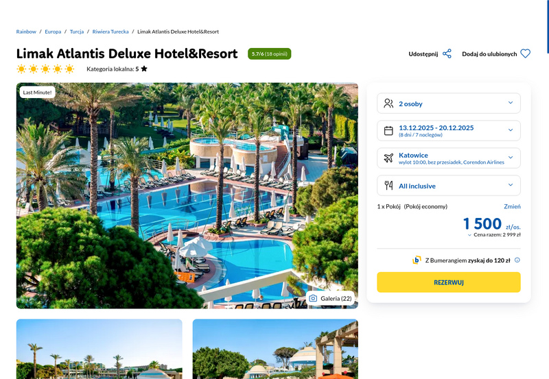 Misją Lastminuter.pl jest przedstawienie Ci najlepszych zdaniem naszej redakcji okazji na podróże. Opisujemy oferty znalezione przez nas w internecie i wskazujemy adresy internetowe, pod którymi samodzielnie możesz wykupić podróż lub elementy podróży. Ceny w artykułach są aktualne w chwili publikacji. Możemy otrzymywać wynagrodzenie od partnerów handlowych, do których Cię przekierowujemy. Nie ma to wpływu na cenę Twojej wycieczki. Powielanie publikacji zabronione.