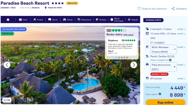 Zanzibar i Paradise Beach Resort to propozycja dla tych, którzy chcą wyjechać, odpocząć i naładować baterie w pięknym otoczeniu. Dla wielu to nie tylko zasłużony relaks, ale też przygoda, z której wraca się z głową pełną wspomnień i ochotą, by kiedyś tam wrócić.