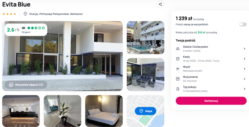 Biorąc pod uwagę korzystną cenę, wygodną formułę wyjazdu i ciekawą lokalizację, ta oferta może być dobrą opcją na spokojny urlop w Grecji – czy to na leniwe plażowanie, czy też na odkrywanie uroków regionu.