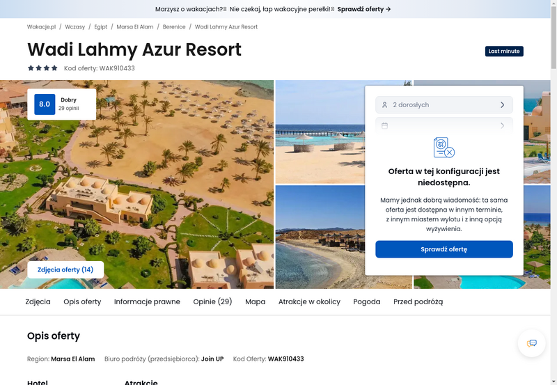 Niedostępność oferty została udokumentowana zrzutem ekranu.