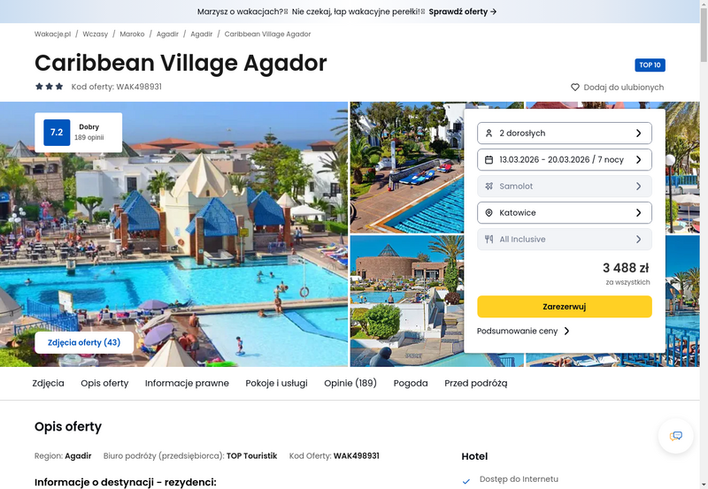 Aktualizacja: Maroko: tygodniowe all inclusive w 3* hotelu od 1738 zł
