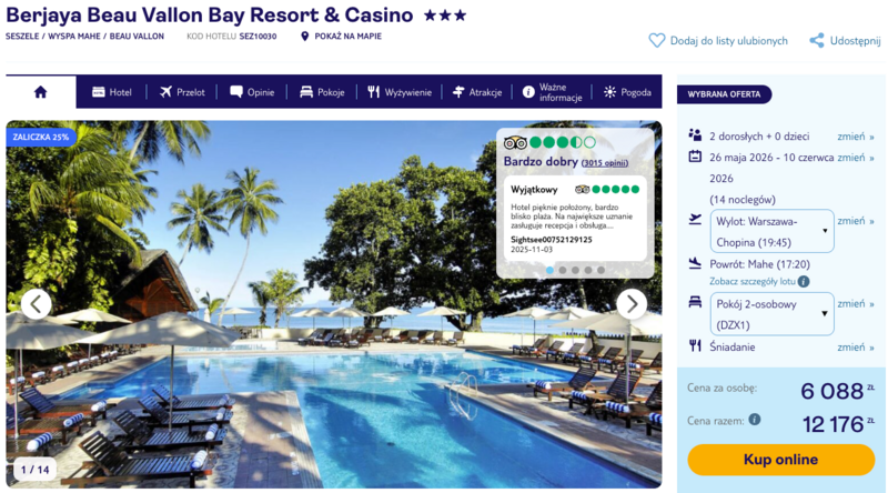 Choć sam hotel zbiera różne opinie, całość oferty prezentuje się naprawdę atrakcyjnie. Bliskość plaży, tropikalny klimat i możliwość spędzenia czasu aktywnie lub leniwie sprawiają, że może to być idealny kierunek na błogi reset.