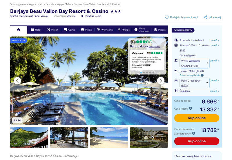 Aktualizacja: Długi urlop w rajskiej scenerii: Seszele, 14 dni w 3* hotelu ze śniadaniami przy plaży od 6088 zł