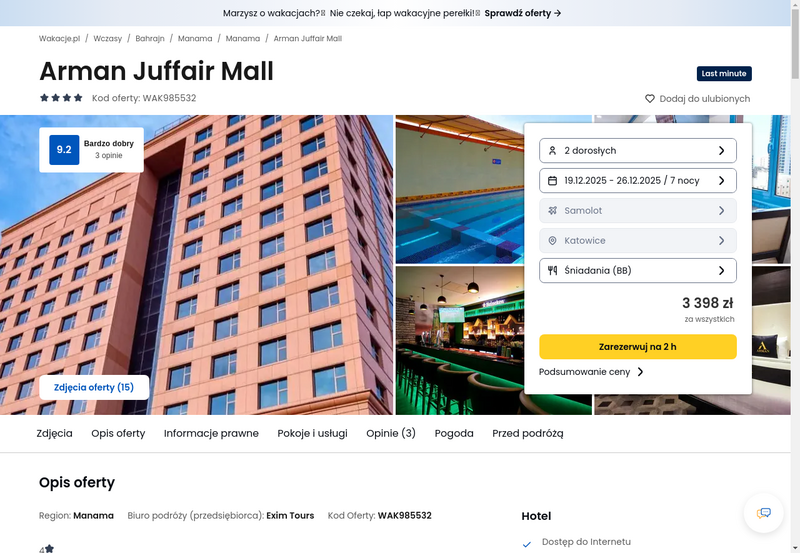 Ten wyjazd to ciekawa propozycja dla osób, które zimą marzą o czymś więcej niż tylko odpoczynku. Bahrajn oferuje dużo do odkrycia, a połączenie dobrej lokalizacji hotelu, komfortowego zakwaterowania i atrakcyjnej ceny sprawia, że to opcja warta rozważenia.