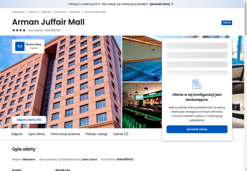 Niedostępność oferty została udokumentowana zrzutem ekranu.