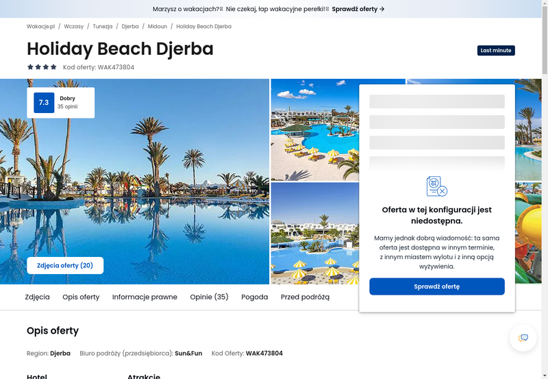 Niedostępność oferty została udokumentowana zrzutem ekranu.