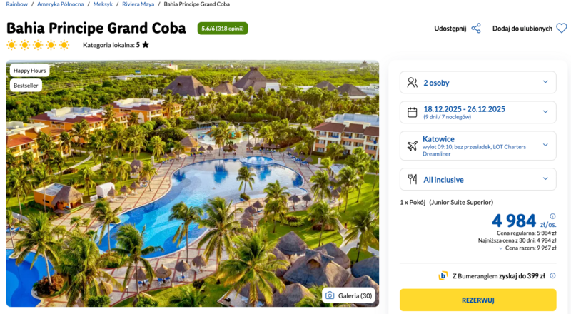 Wylot z Katowic do Cancun to świetna okazja, by posmakować Meksyku w jego ciekawej odsłonie. W ramach tej propozycji zaplanowany jest pobyt w hotelu Bahia Principe Grand Coba, który oferuje formułę all inclusive – idealną dla tych, którzy chcą wyłączyć się z codzienności i w pełni odpocząć.