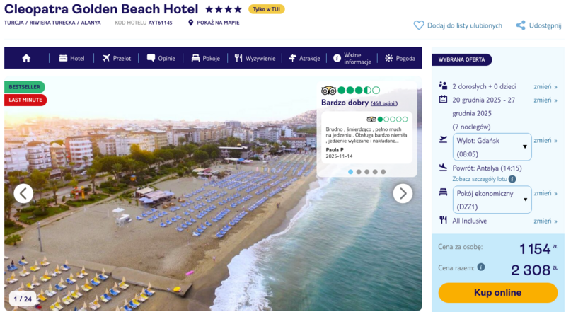 Mimo to oferta wyjazdu może przypaść do gustu osobom, które marzą o spokojnym czasie z dala od zimy. Wygodne warunki, położenie blisko plaży oraz przystępna cena sprawiają, że to propozycja warta rozważenia, szczególnie jeśli ktoś szuka relaksu w cieplejszym klimacie.