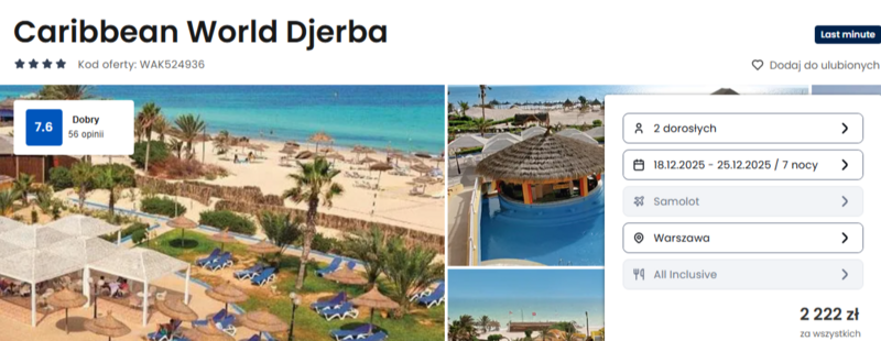 Misją Lastminuter.pl jest przedstawienie Ci najlepszych zdaniem naszej redakcji okazji na podróże. Opisujemy oferty znalezione przez nas w internecie i wskazujemy adresy internetowe, pod którymi samodzielnie możesz wykupić podróż lub elementy podróży. Ceny w artykułach są aktualne w chwili publikacji. Możemy otrzymywać wynagrodzenie od partnerów handlowych, do których Cię przekierowujemy. Nie ma to wpływu na cenę Twojej wycieczki. Powielanie publikacji zabronione.